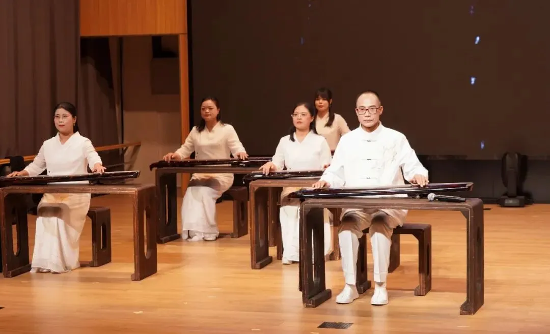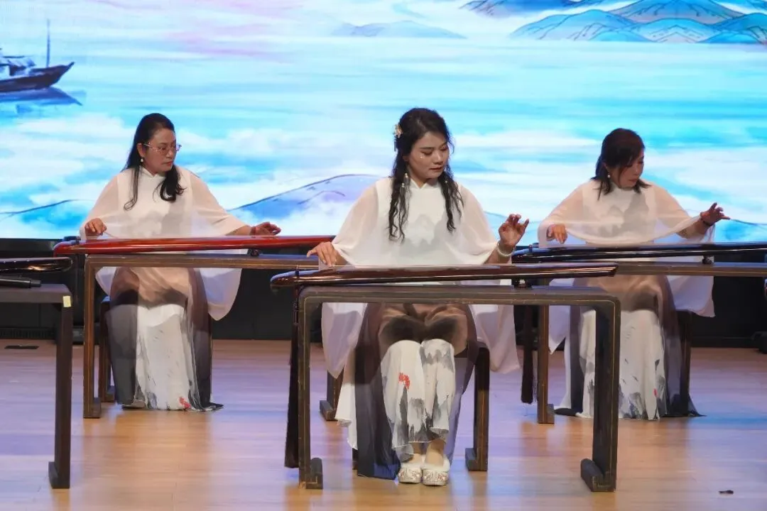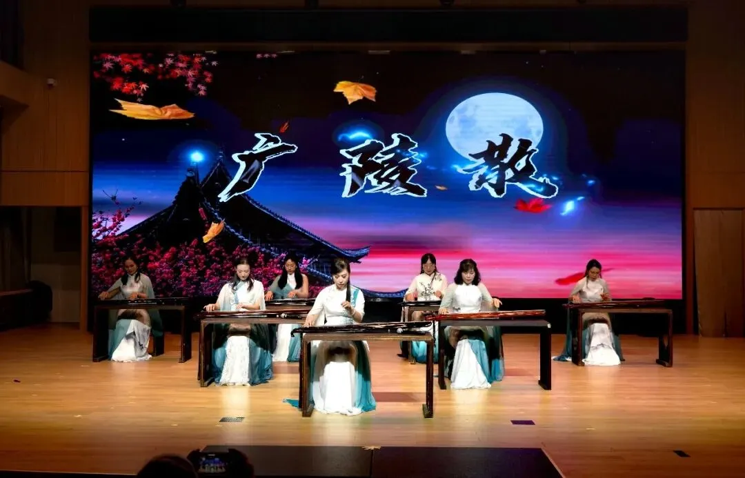 年会的高光时刻,古琴教师团登台奏响千古绝响《广陵散》。作为古琴唯一杀伐调,它承聂政之烈,载嵇康之骨,慷慨激昂的旋律弦惊四座、气贯长虹,让在场者聆听穿越千年的慷慨之音,感受古琴艺术的无穷魅力。