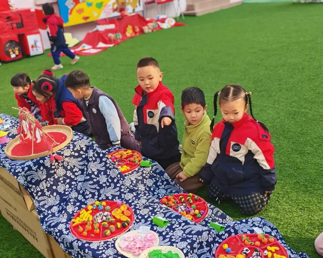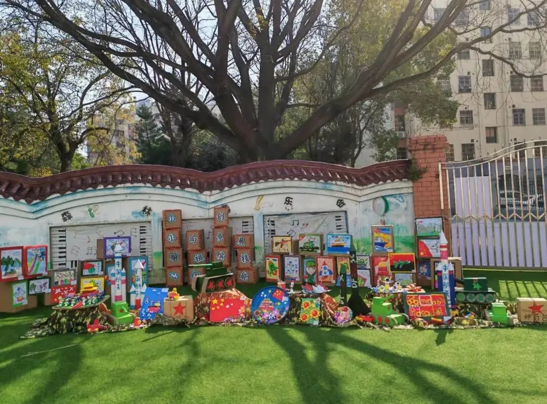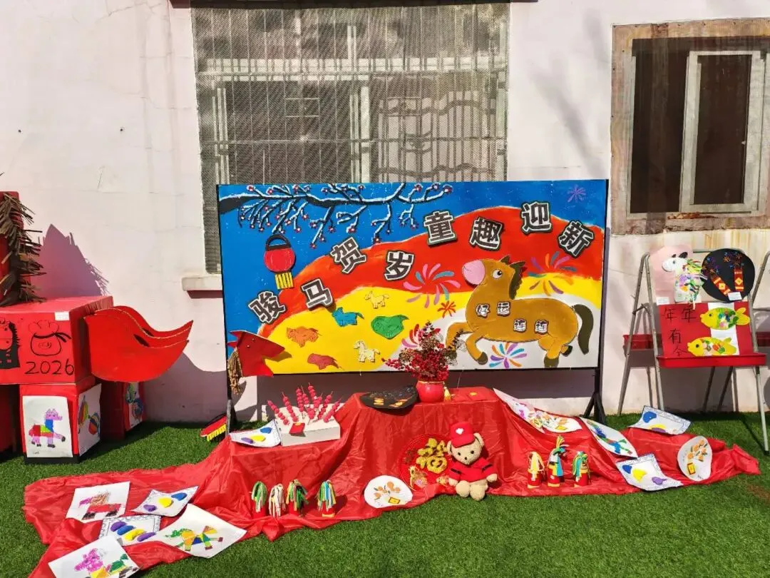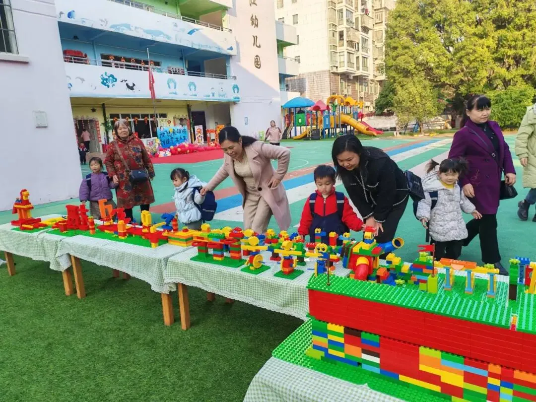 午后,幼儿园绿草地摇身一变,成为充满创意的艺术展地。乐高和美术组的老师们精心布置场地.乐高组以《乐高总动员·拼出童真梦》为主题,每个孩子都有专属的个人作品,一件件凝聚着孩子们心血的作品,在冬日里绽放出别样光彩。美术展区按年级分组,每一幅作品都是孩子们童心的写照。大班组以《小小童心向祖国,创意缤纷展技能》围绕抗战胜利80周年主题,孩子们用画笔勾勒阅兵方阵、描绘祖国山河,鲜艳的色彩里,是对祖国妈妈最真挚的热爱。中班组以《我的家乡美如画,我们大家都爱他》为主题,赣州十八个县市的美食美景、名山大川,在孩子们的笔下栩栩如生。客家围屋、章贡古城、赣南脐橙……一笔一划,都是对家乡最深的眷恋。小班组以《骏马贺岁,童趣迎新》为主题:马年元素跃然纸上,奔腾的小马、喜庆的鞭炮、可爱的福字,孩子们用稚嫩的笔触,绘出新年的喜庆氛围与龙马精神。