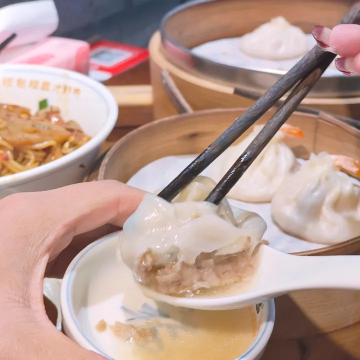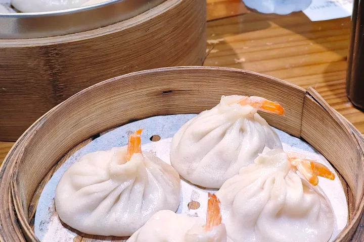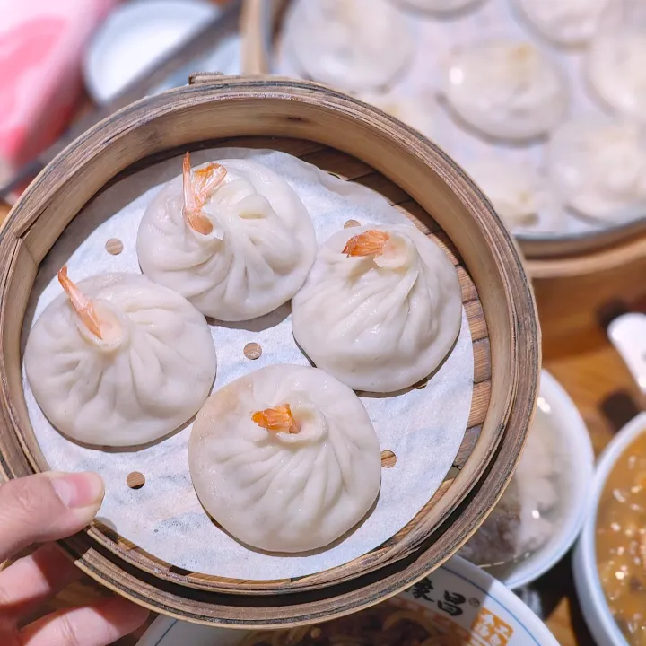 汤包现包现蒸,皮薄透光,咬开汤汁四溢,鲜香醇厚。内馅紧实,虾仁鲜嫩弹牙,鲜味儿十足。趁热吃口感最佳,皮软润不粘牙。