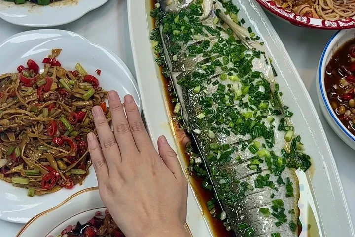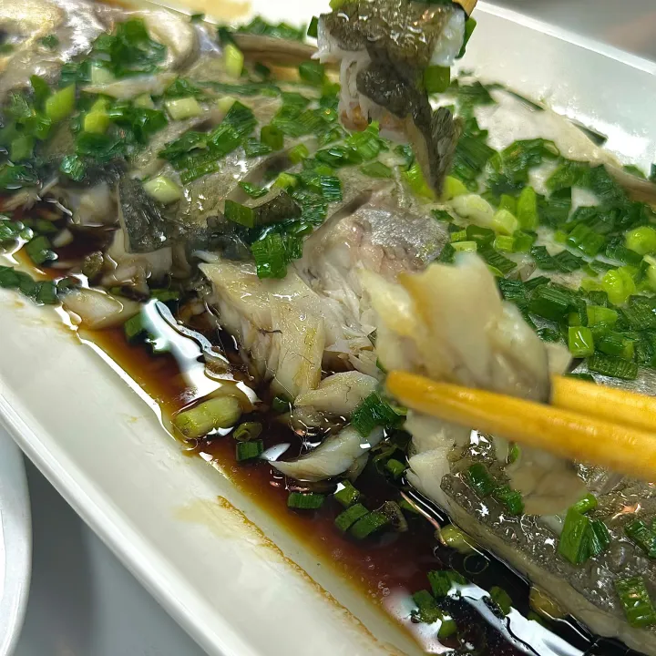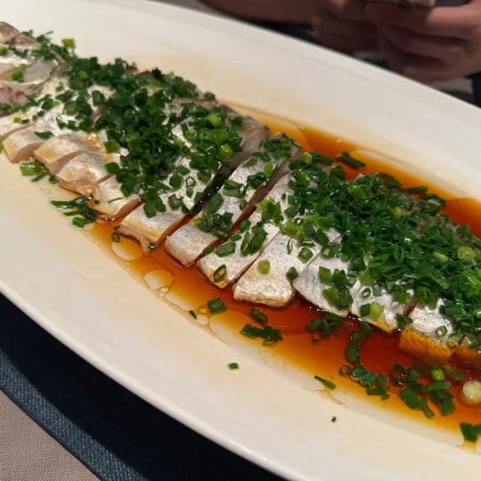 这道葱油白鱼肉质软嫩细腻,口感绵密无刺,吃着过瘾。葱香浓郁不抢味,更衬鱼肉清甜,小船摆盘雅致得体。趁热吃鲜味最足。