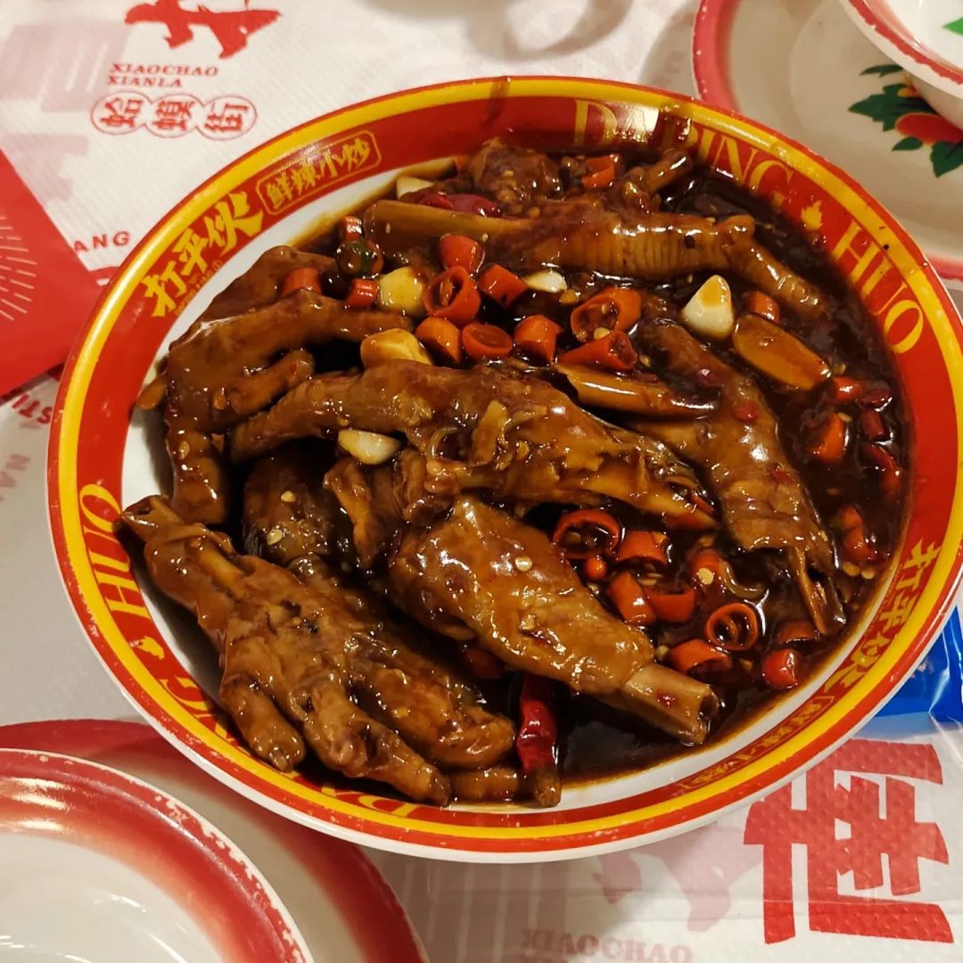 红烧鸡脚色泽红亮,酱香浓郁,甜辣口调得适中,入味透彻。肉质软糯脱骨,一抿肉骨分离,口感绵密不柴,越吃越能品出辣味层次,回味悠长。