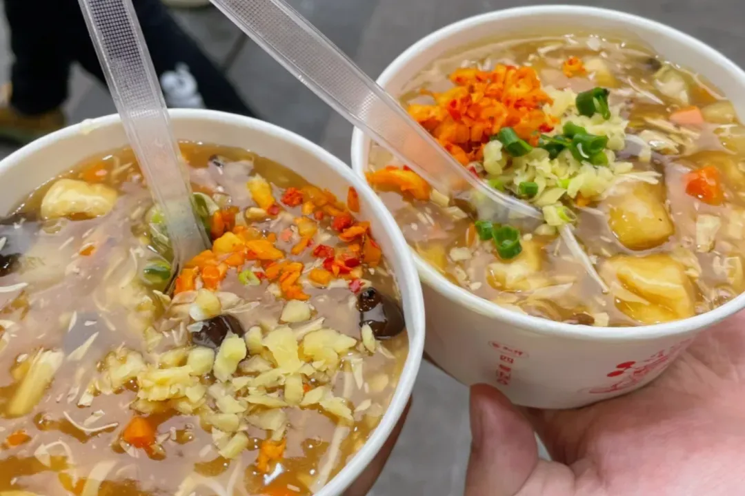 糊羹的质地浓稠黏糯,入口是绵密的糊状口感,没有明显的颗粒感,更像稠厚的浓汤。小吃摊的版本会撒上脆爽的萝卜干,绵密基底搭配爽脆点缀。