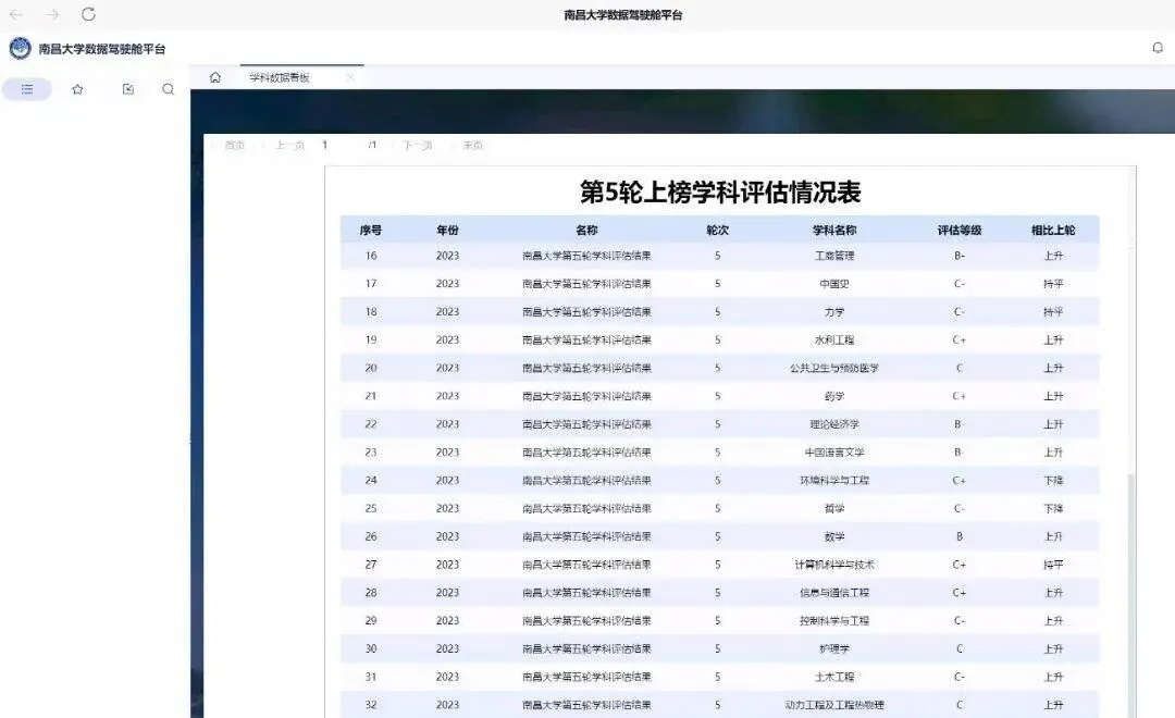 ● 南昌大学线上数据驾驶舱平台,则公布了第五轮学科评估各学科具体成绩。