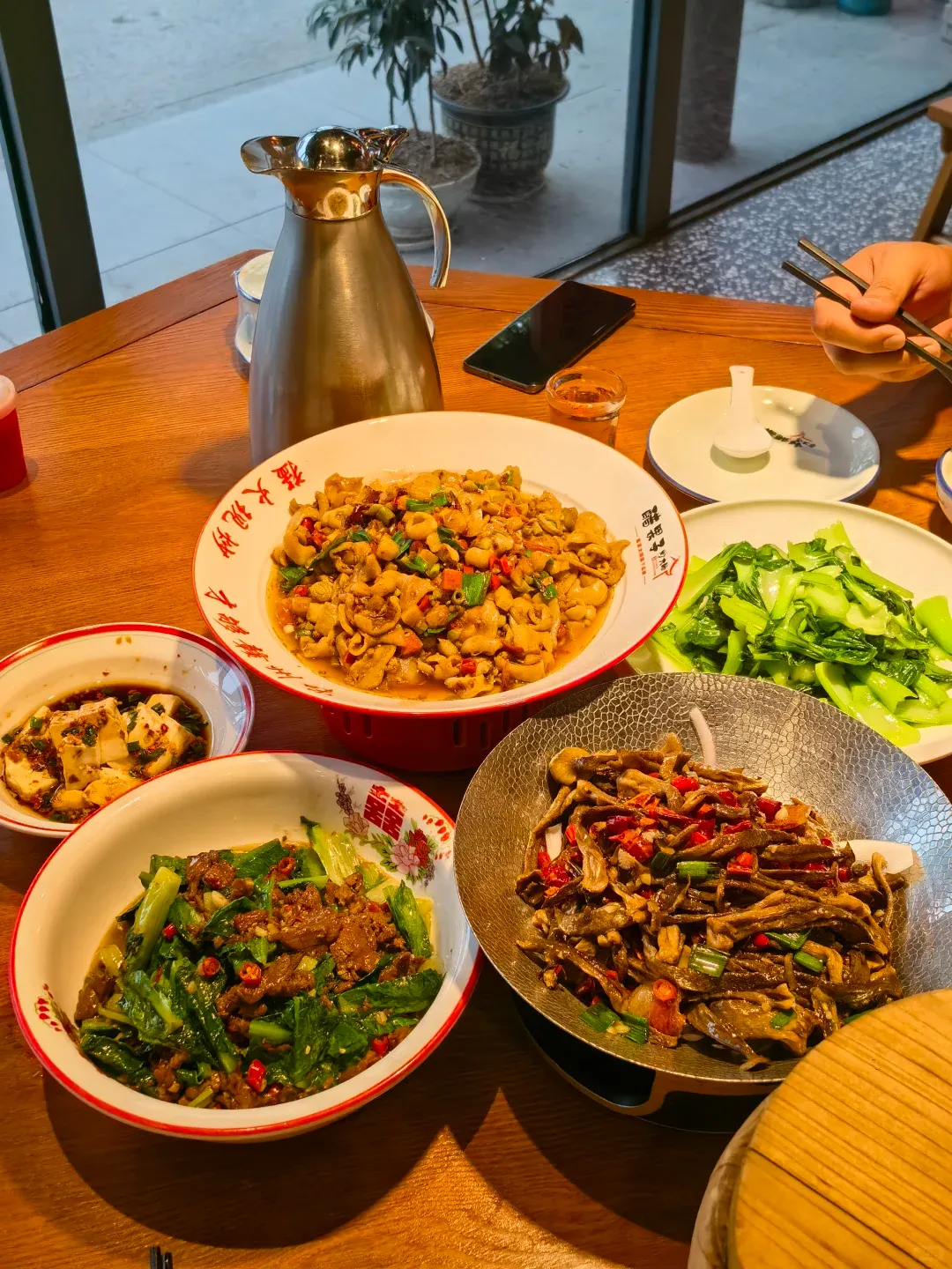 要说一道代表性的菜——南康酿豆腐。豆腐切块,中空挖心,塞入猪肉末、香葱、碎香菇,再下锅轻煎,煎出边角金黄,淋上自制酱油收汁。外脆里嫩,带着一丝烟火气。那一口,是家的味。