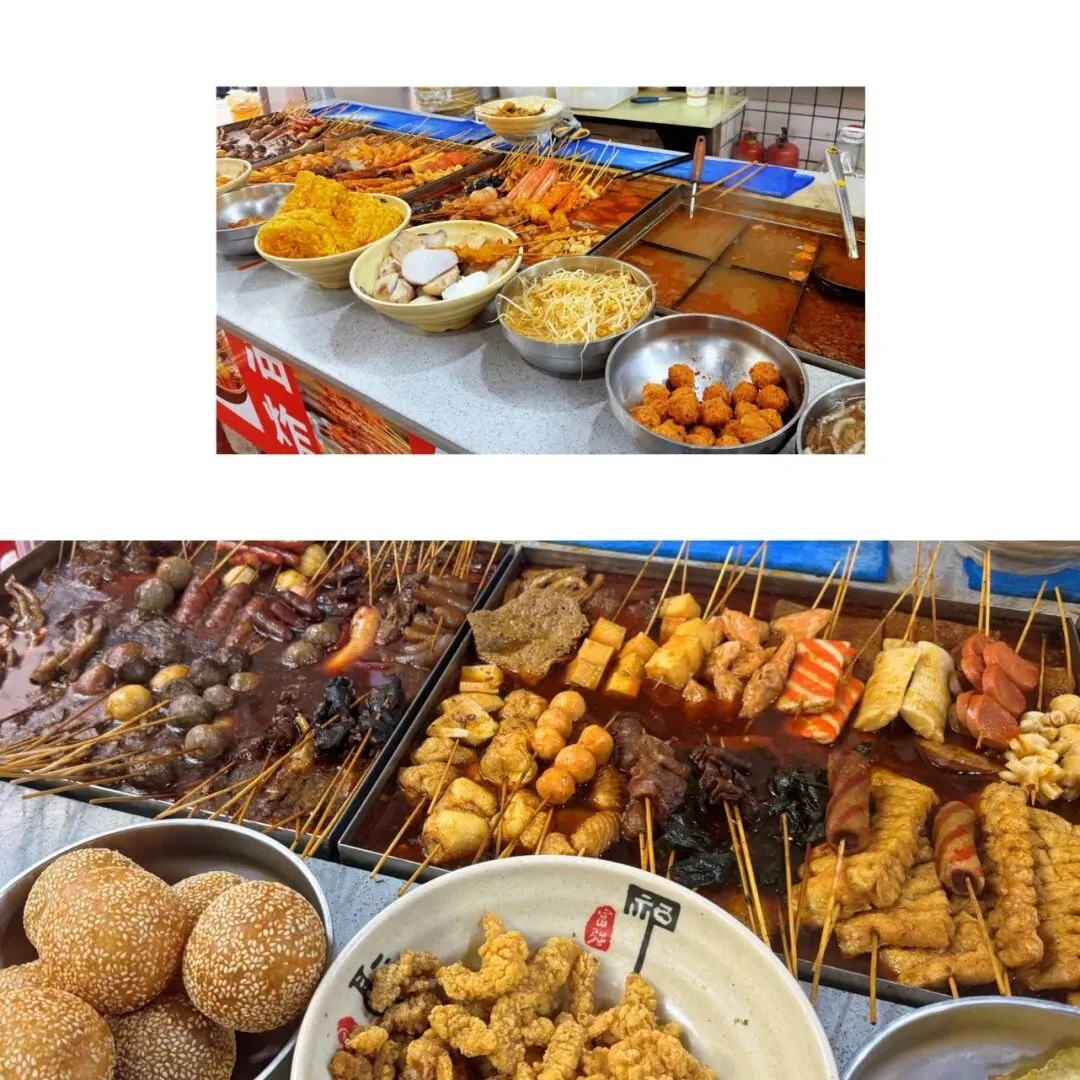 沿路买了“段叔油条包麻糍”,选的芝麻白糖味,油条不够酥还有点腻,我不太爱吃,他倒是都吃完了;“椒煌鸭”品种很多,可以按个挑选,鸭舌鸭下巴鸭腿一样来了一点,油炸再复炸有点太焦脆;看某评认真选了一家“食源香水煮”,过了饭点,也比较安静,选了一些水煮菜,还油炸了几串小食。牛肚牛筋都煮的非常软烂,白萝卜也是入口即化,“大脚板”没弄清具体是什么但也吃了,应该算是豆制品吧?问了老板娘,她用方言回答我,结果完全没懂。