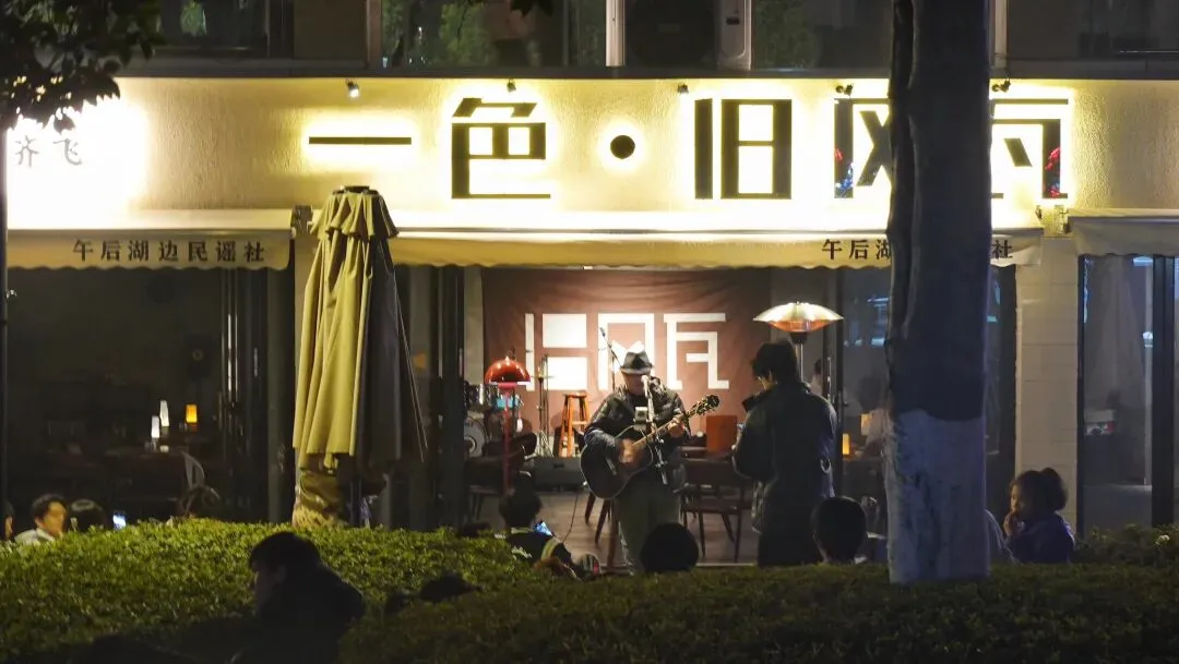 喷泉表演结束,秋水广场撤离的人流量与车流量都变得很大,好在这里有地铁1号线。我们往地铁站走的途中,广场下面的小酒馆有人正在驻唱,唱的是某人喜欢的歌手的歌,让他下去听了两首,正好错开散场的人潮。