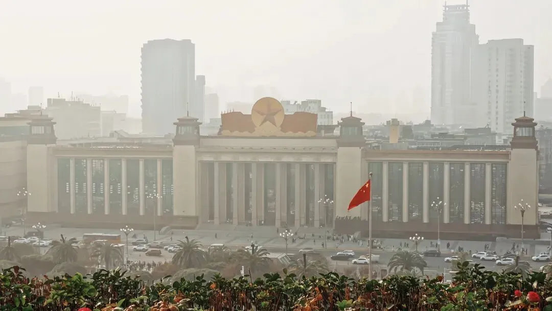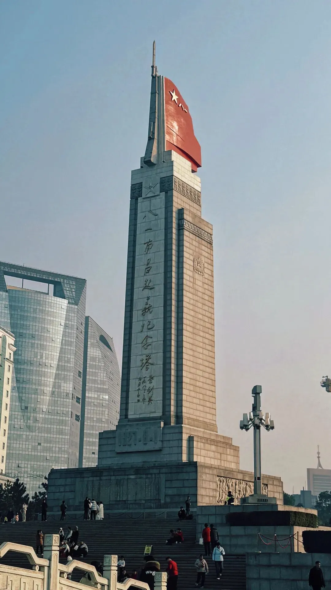 傍晚去武商 Mall-7L 天空花园这儿瞰景,效果肯定最佳,但是我们下午逛完这里就准备回家。镜头里依旧是雾蒙蒙的天色,若隐若现的江西省美术馆。下楼穿过地下通道,直达广场中心,八一南昌起义纪念塔背后又是基建塔吊…