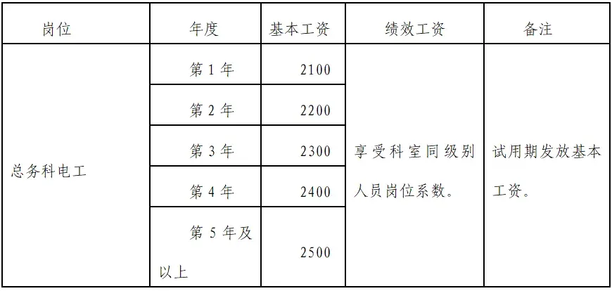 工资包含基本工资及绩效工资,为员工购买养老保险、医疗保险、工伤险、失业保险,享受医院工会福利、中餐补助。具体待遇见下表。