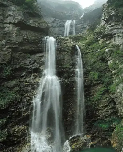 庐山的自然景观得天独厚,以“雄、奇、险、秀”著称于世。五老峰巍峨耸立,形似五位老人并肩而坐,在云雾中若隐若现,仿佛诉说着岁月的沧桑。三叠泉更是气势磅礴,瀑布分三级直泻而下,如银河落九天,那轰鸣声震人心魄,让人不禁感叹大自然的鬼斧神工。