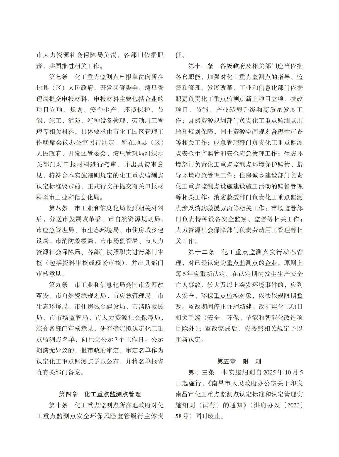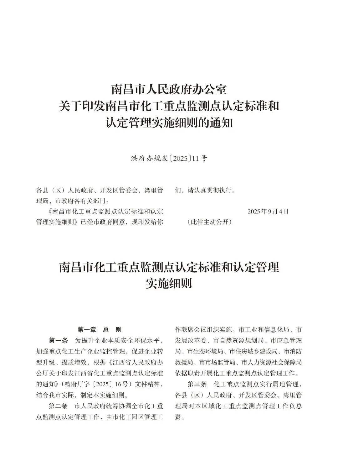 >南昌市人民政府办公室关于印发南昌市化工重点监测点认定标准和认定管理实施细则的通知