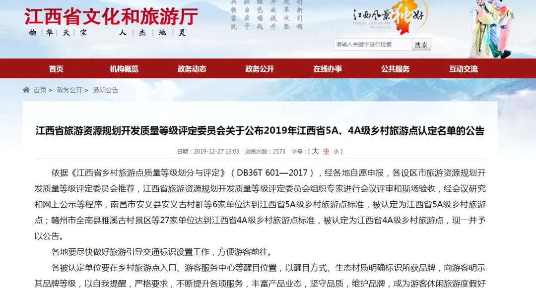 1 | 赣州市全南县 | 雅溪古村景区 |