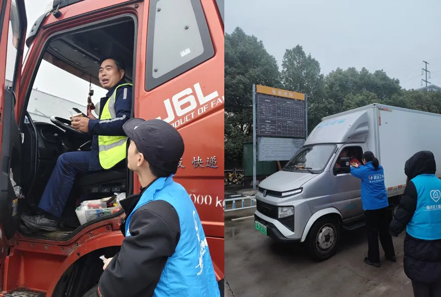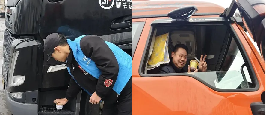 天寒地冻,志愿者们却满心热忱。为不打扰车上休息的师傅,大家轻手轻脚递上热粥,每张粥碗旁还附上了手写便签,字里行间满是牵挂与祝福。接过暖意融融的腊八粥,一位老师傅搓着冻红的双手,脸上漾起朴实的笑容:“过了腊八就是年,没想到在路上也能喝到热粥,有家的味道了!”