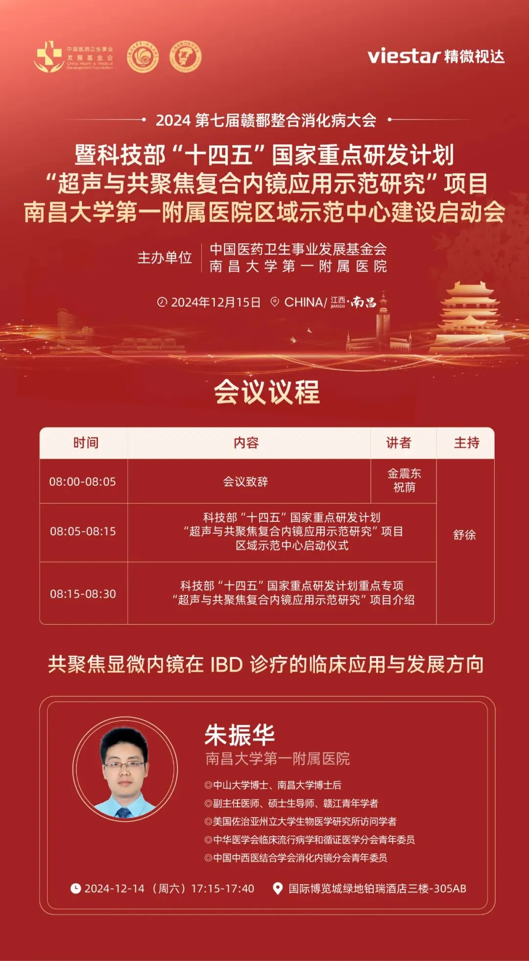 会议期间,科技部“十四五”国家重点研发计划“超声与共聚焦复合内镜应用示范研究”项目南昌大学第一附属医院区域示范中心建设启动会也将同期举行。