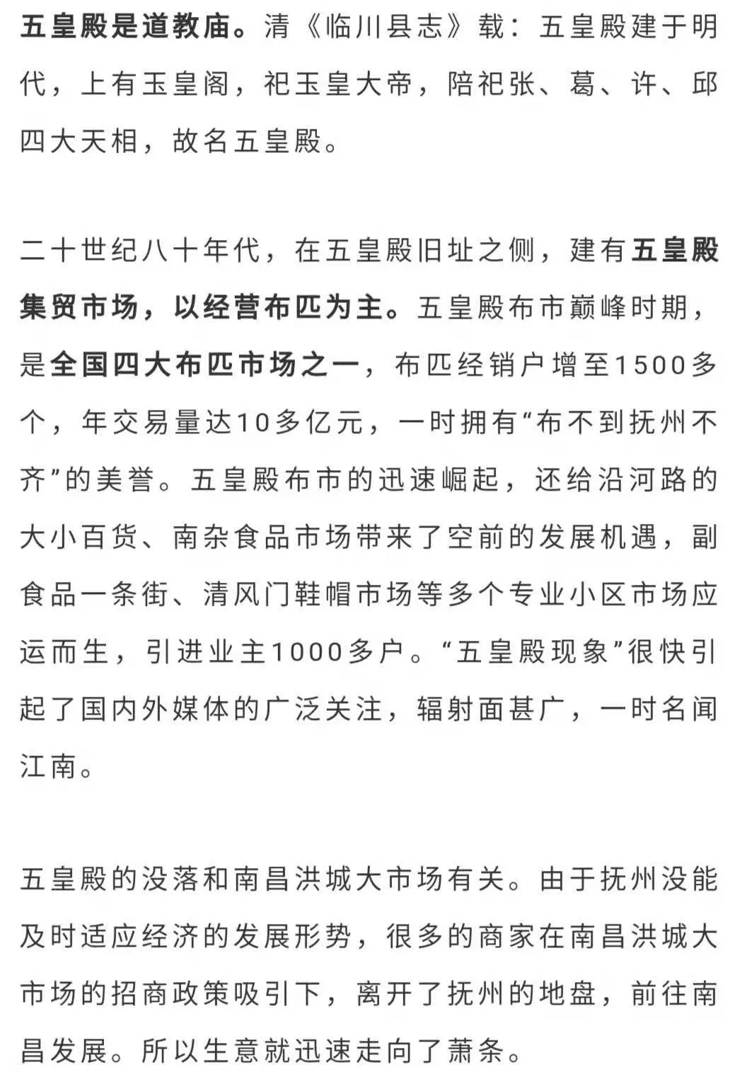 抚州玉隆万寿宫是抚州仅存的最大的古建筑群,也是江西省境内保存最好的一处万寿宫,具有重要的历史、艺术和科学价值,是抚州古建筑瑰宝。清代抚州境内兴建了大批的万寿宫,据《临川县志》(光绪版)记载,当时仅临川一县就建有11座万寿宫,可以看出当时万寿宫道教香火之盛。
