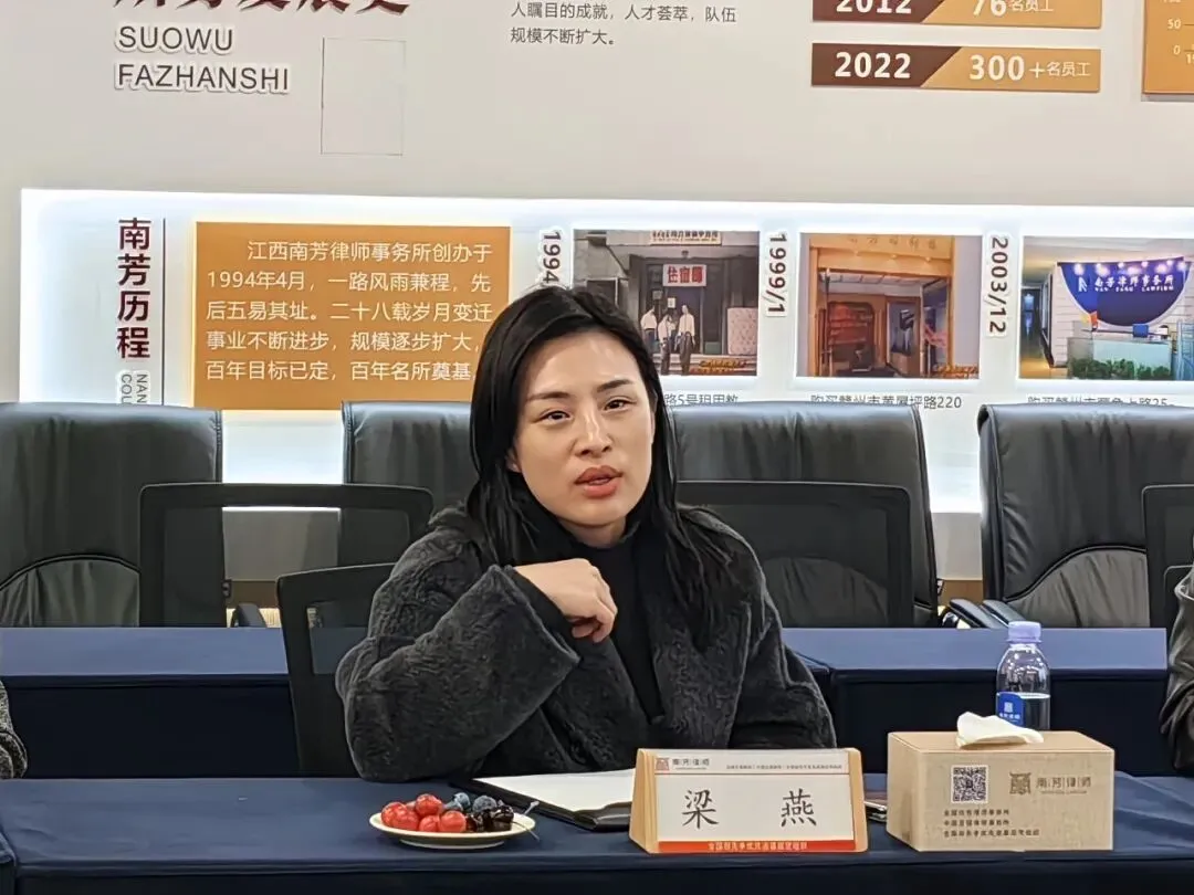 1月28日上午,南昌工学院马克思主义中国化教研室主任、法务事务专业任课教师詹楚月,研室专职老师龚芳怡到我所参观交流。南芳(南昌)所管委会主任梁燕,所业发委主任邹志强,妇联副主席陈文萍,行政主管龚慧慧,律师万桑奕热情接待。双方在会议室召开了南芳(南昌)所与南昌工学院法学专业人才培养合作洽谈会。