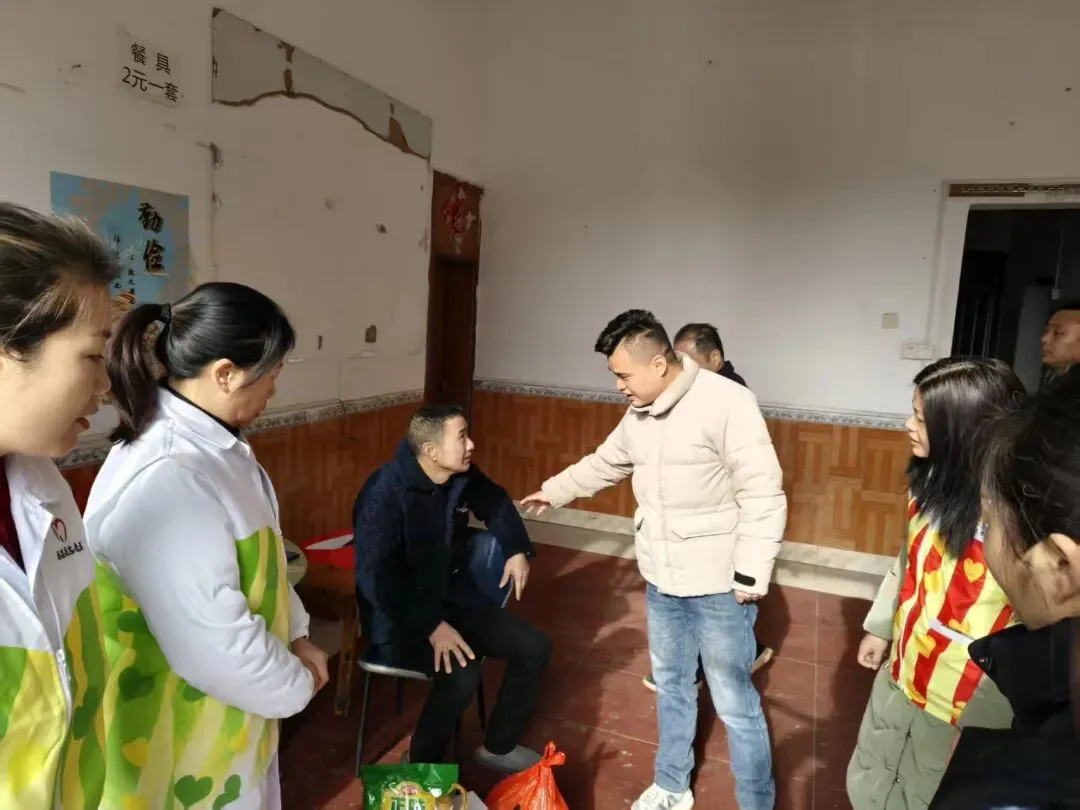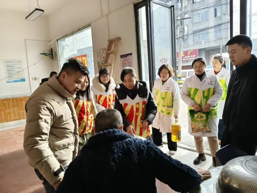 义诊之余,党员干部走访慰问了辖区生活困难和患病群众,与他们亲切交谈,详细询问身体状况、生活需求和实际困难,为其送上油、奶、麦片等生活物资,鼓励他们保持乐观积极的生活态度,叮嘱他们注意冬季保暖和日常健康防护,并提前送上新春祝福,让他们在寒冬中感受到党组织的关怀与温暖。
