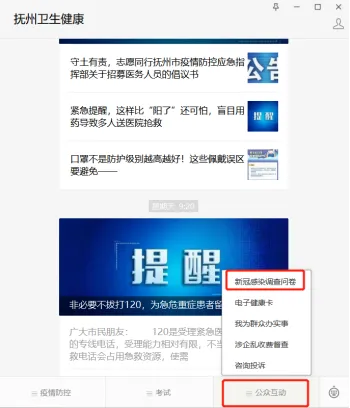 方式一:关注“抚州卫生健康”公众号,并在对应位置进行信息填写
