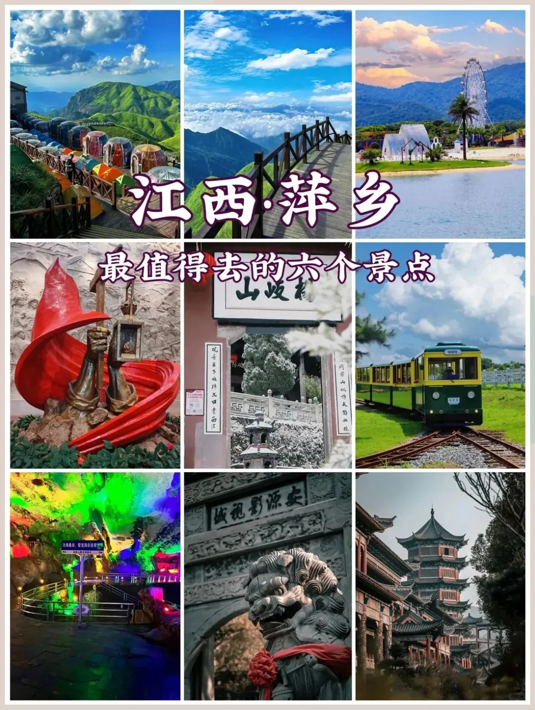 离开萍乡那天,我在车站买了一包辣片。车开的时候,我看着窗外的老烟囱越来越小,突然明白——这里的硬朗和温柔从来不是分开的。山是硬的,但草甸是软的;矿车是冷的,但茶棚的茶是暖的;日子是慢的,但每一秒都扎实。我带走的不是照片里的风景,是那种松下来的感觉,像风裹着草香,轻轻贴在心上。下次再来,我想再去菜场转一转,再吃一碗拌粉,再坐在杨岐山的石阶上,等风停。
