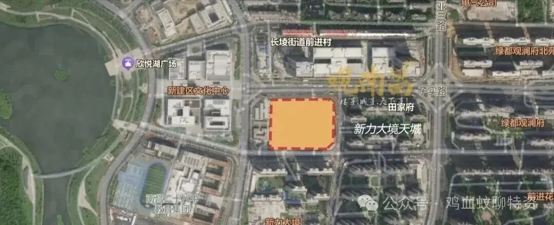 本宗地块原属于新力地产,位于南昌市新建区欣月湖板块内。其中一期开发项目名称【大境天成】,本次拍卖的是二期,也就是【大境天成】西侧地块。