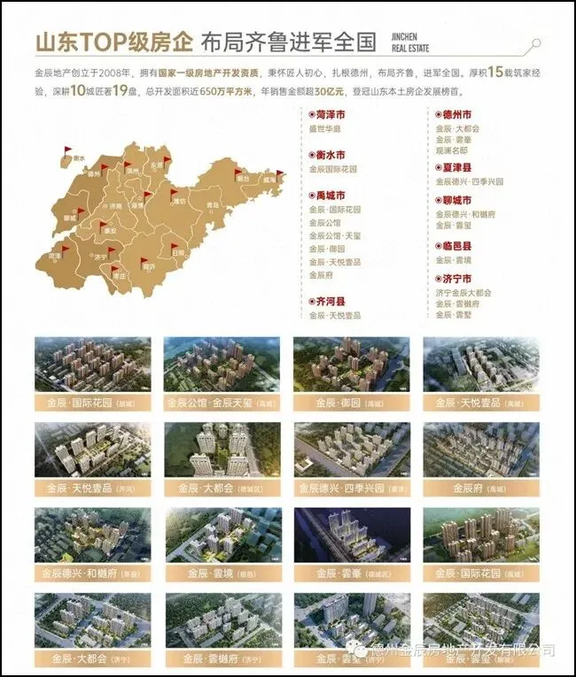 金辰房地产是山东德州本土企业,一直在德州市及周边区域城市深耕多年。本次是第一次跨越长江,来到南昌。也是山东老牌的房地产开发企业,实力雄厚、风格稳健,且集团旗下还有建设、物业、资金供应链等板块。