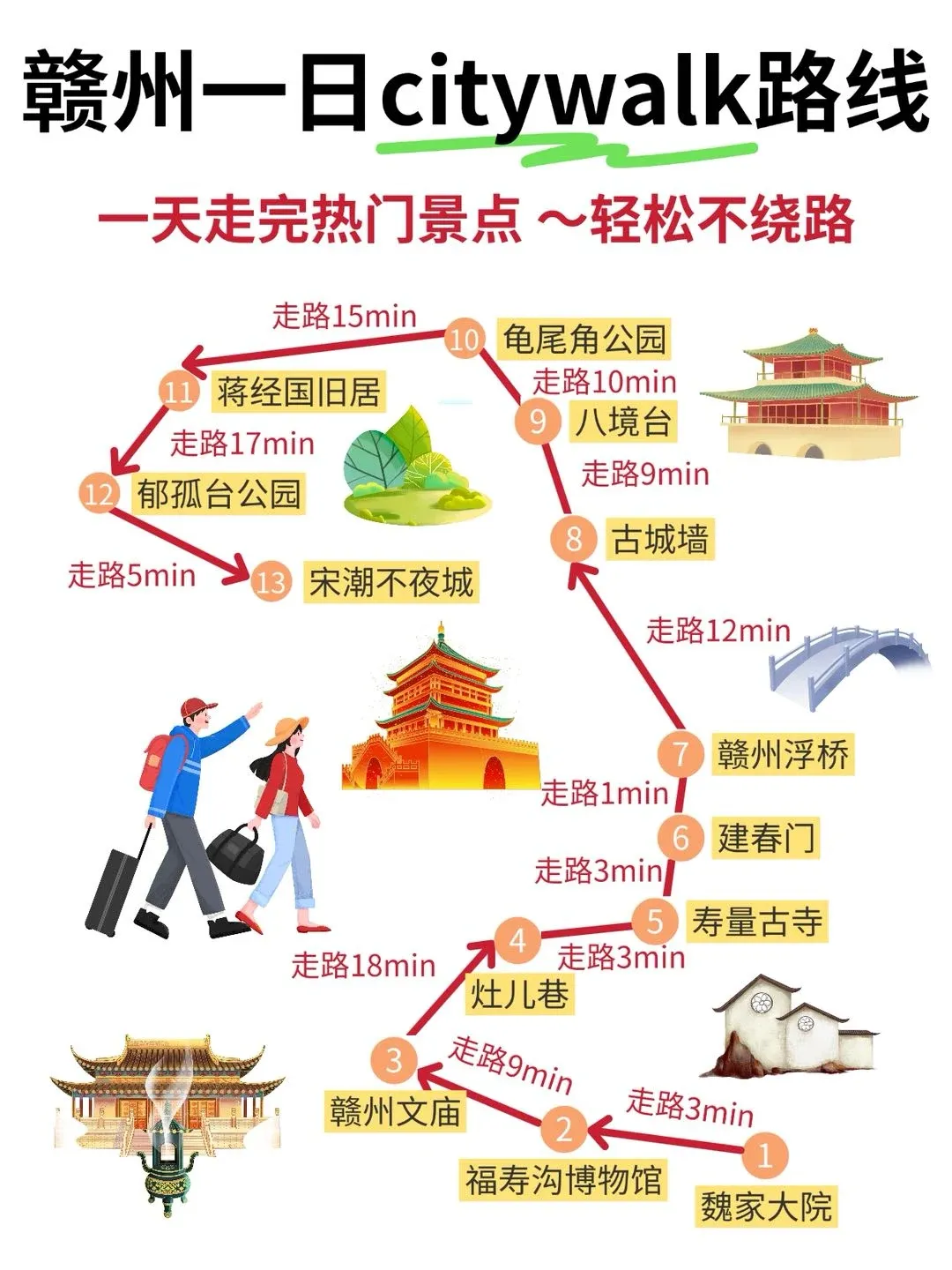 安排四到五天,一天在章贡区逛宋城、看古浮桥,一天去龙南探访关西新围等客家围屋,再用两三天上三百山吸氧或去于都感受长征起点。