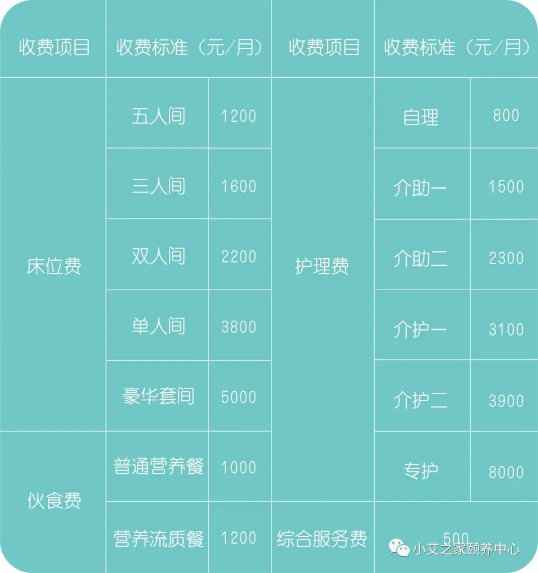 小艾之家养护院(福寿路旗舰店)的长者住养费,可采取月缴、季缴或者年缴的形式灵活缴费。长者的住养费用包含床位费、伙食费、护理费、管理费四个部分;其中床位费、伙食费、管理费根据您的选择即可确定,护理费需要对长者身体状况进行科学、专业的全方位评估,评估结果对应相应的护理等级及费用。限时推出了199元/3天或399元/7天的超值体验服务,内含老人的三餐、两心、住宿、生活照料、护理服务、康乐活动。关注公众号即可注册会员,