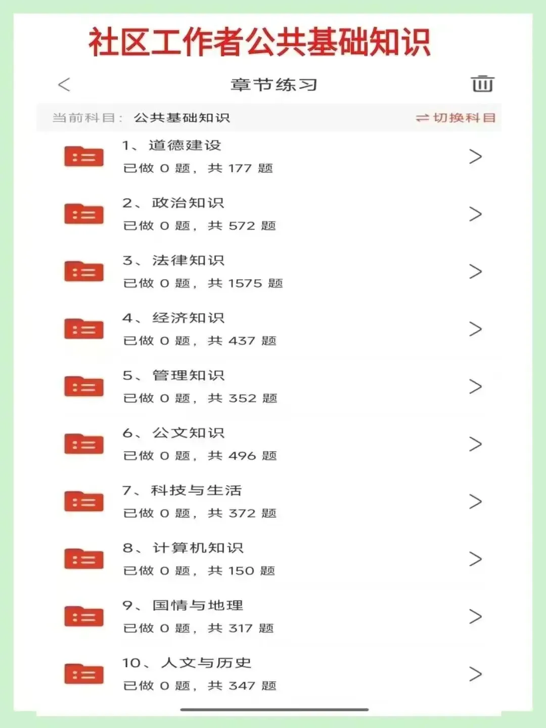 主要包括社会工作综合能力、社区工作相关法律法规政策、时事政治、公文写作等方面的知识,满分为100分。