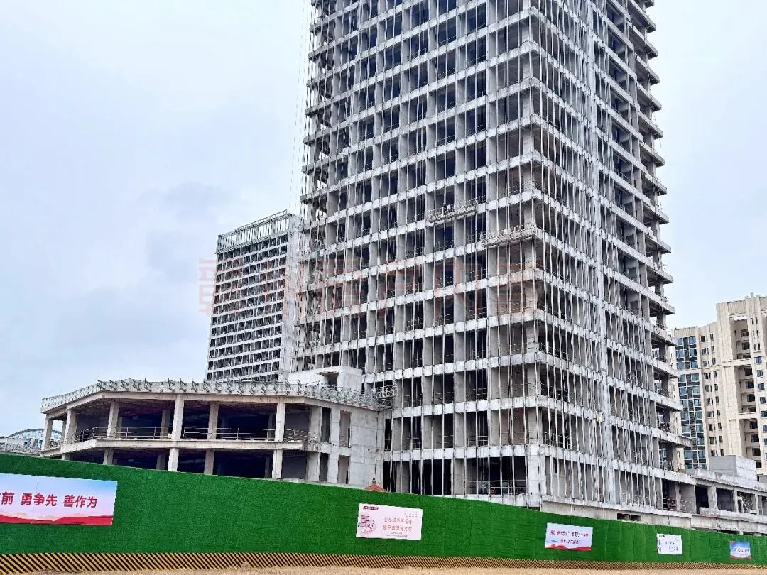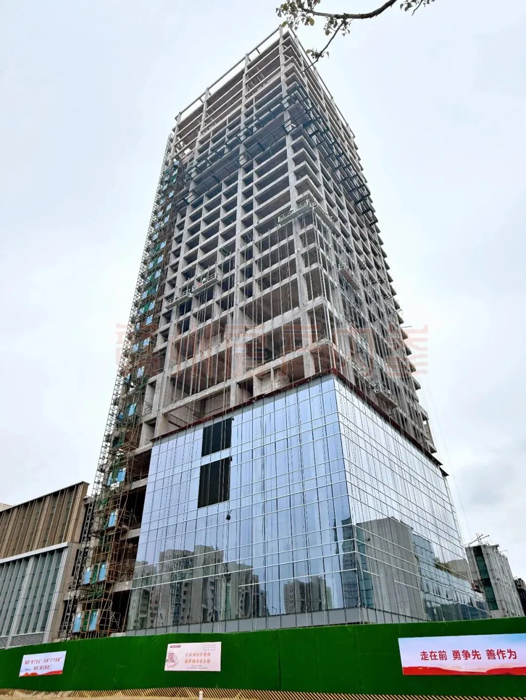 ▲ 蓉江新区嘉福新天地东地块商业进度还不错,超高层玻璃幕墙也开始向上安装了