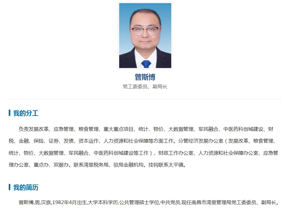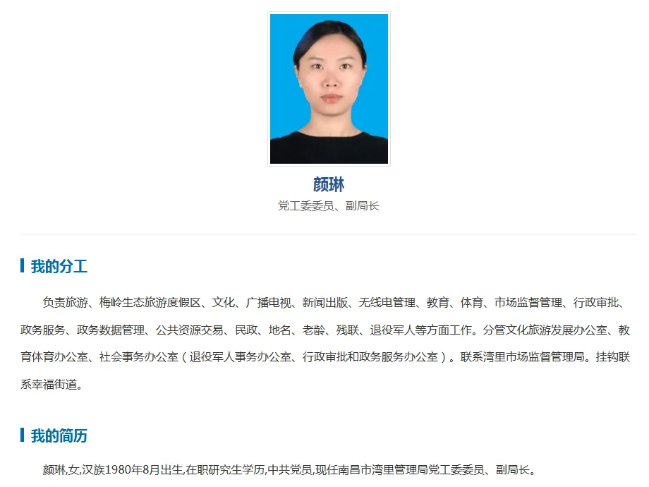 占雯,女,汉族,1985年10月出生,研究生学历,经济学硕士学位,中共党员,现任南昌市湾里管理局党工委委员、副局长。