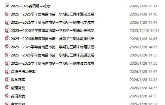 南昌市2025-2026年初三第一学期期末考试已结束,为了帮助各位初三考生回顾此次考试的试题,老师将初三期末各学科试卷及答案整理出来了,需要的家长可自行下载~