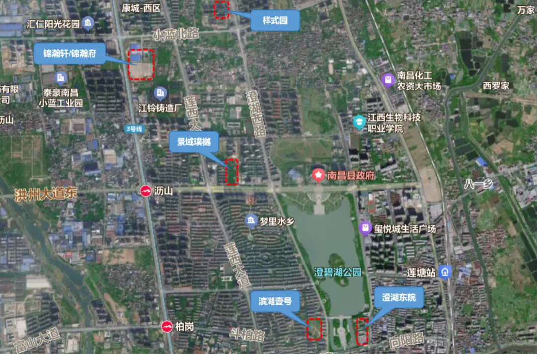 样式园,位于澄湖西路,周边界面相对复杂,好在距离洪范学校、县中医院和前头溪公园均在步行10分钟之内。按照2025年南昌县学区划分,属于洪范学校范围。