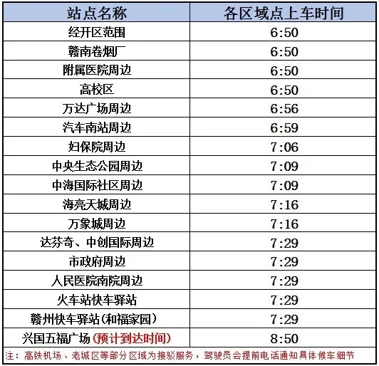 赣州出发:首班时间06:50-末班时间19:50