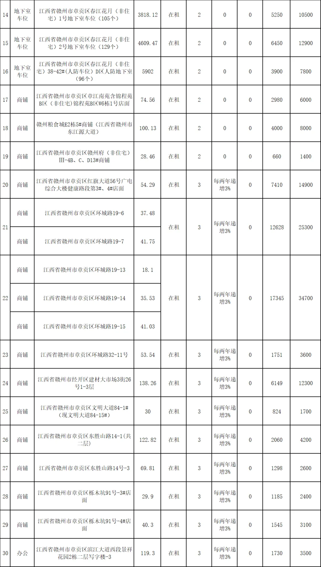 13、本次招租标的14“江西省赣州市章贡区春江花月(非住宅)1号地下室车位(105个)”。