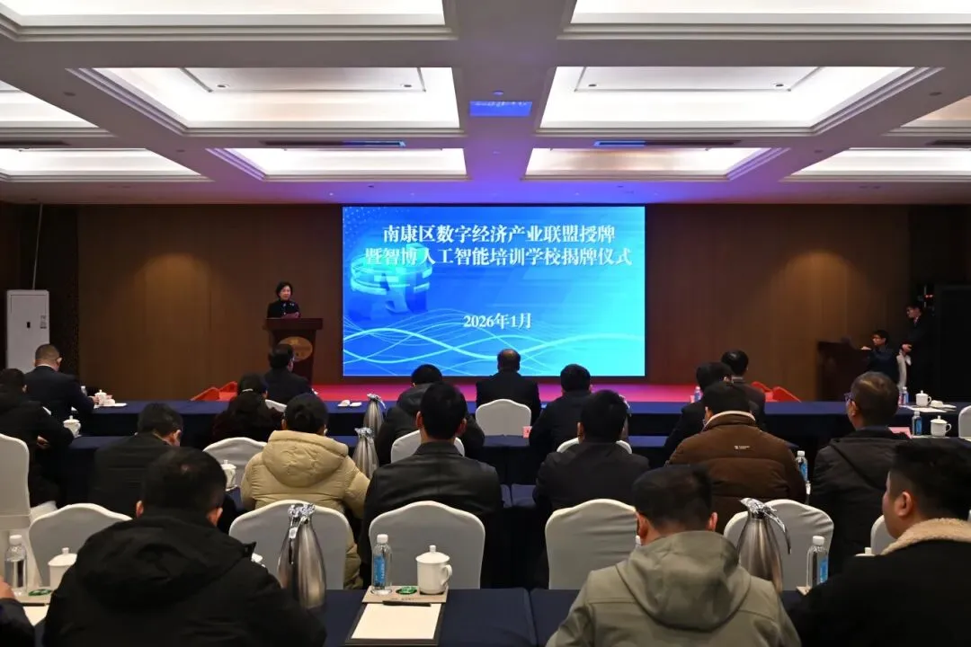 仪式上,余美华介绍了南康区数字经济产业联盟情况,沈立介绍了南康区智博人工智能职业技能培训学校情况。何善锦为南康区数字经济产业联盟授牌,张勤与沈立共同为南康区智博人工智能职业技能培训学校揭牌。