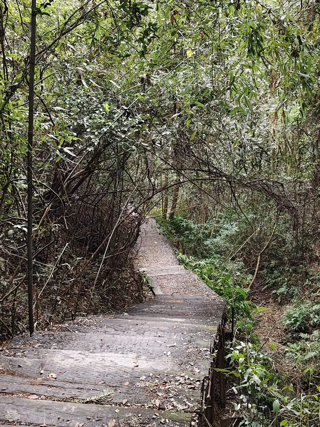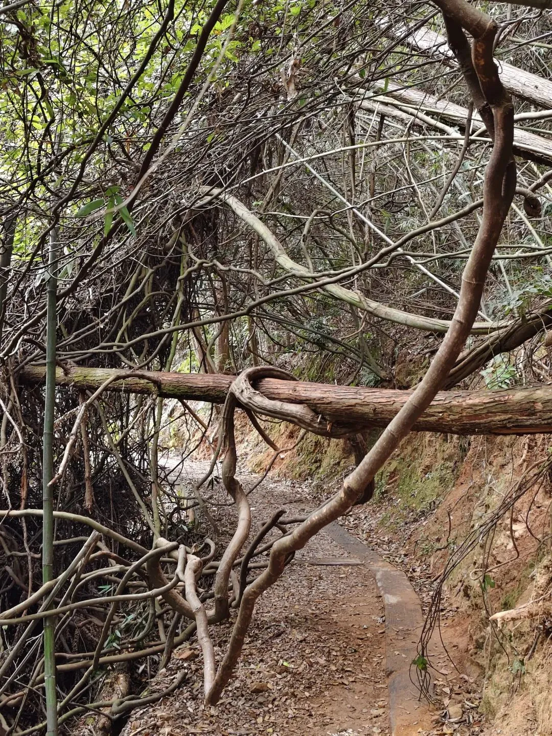这里翠竹漫坡,溪流潺潺,飞瀑溅珠,红土石阶与木栈道蜿蜒穿梭林间。