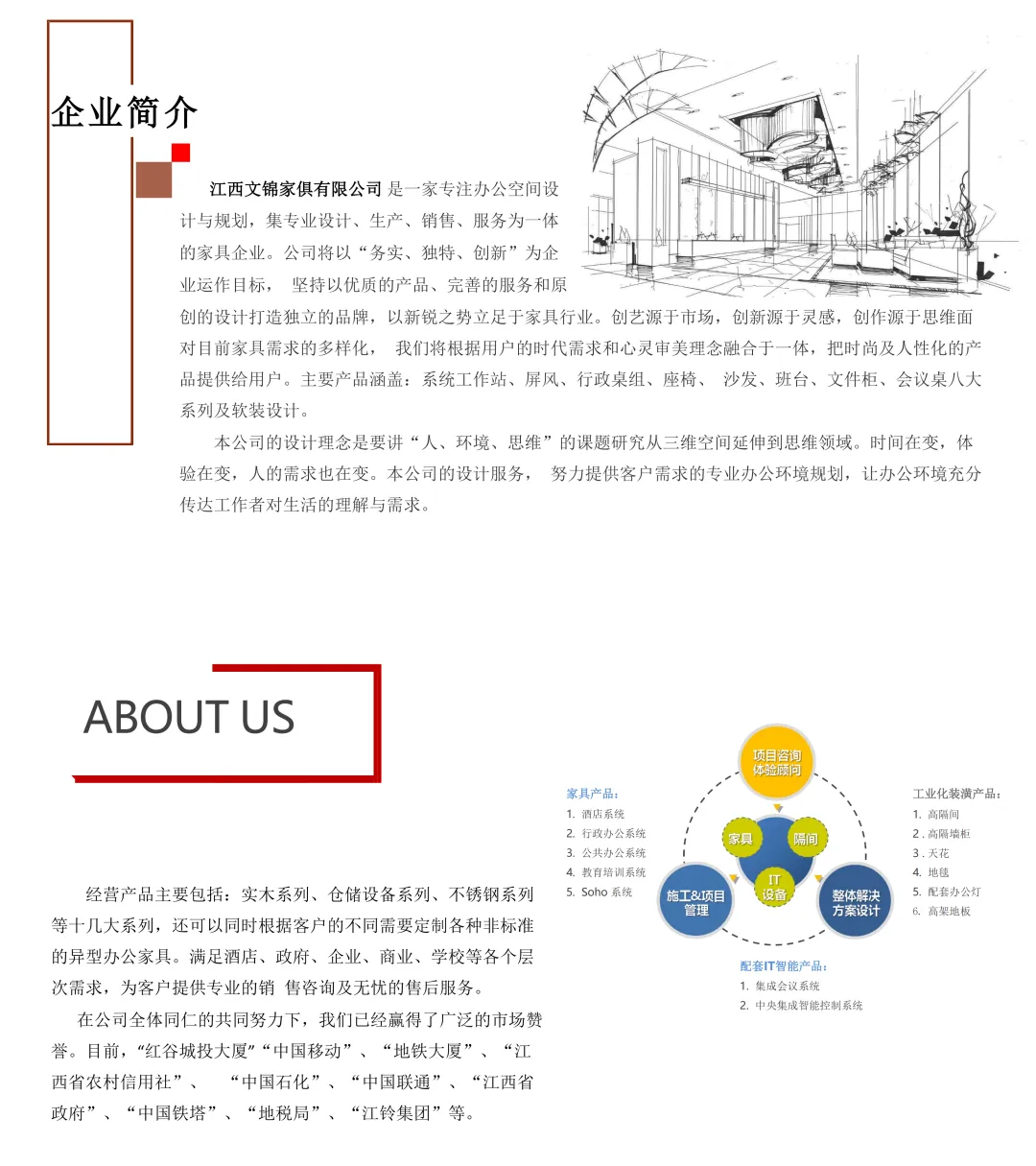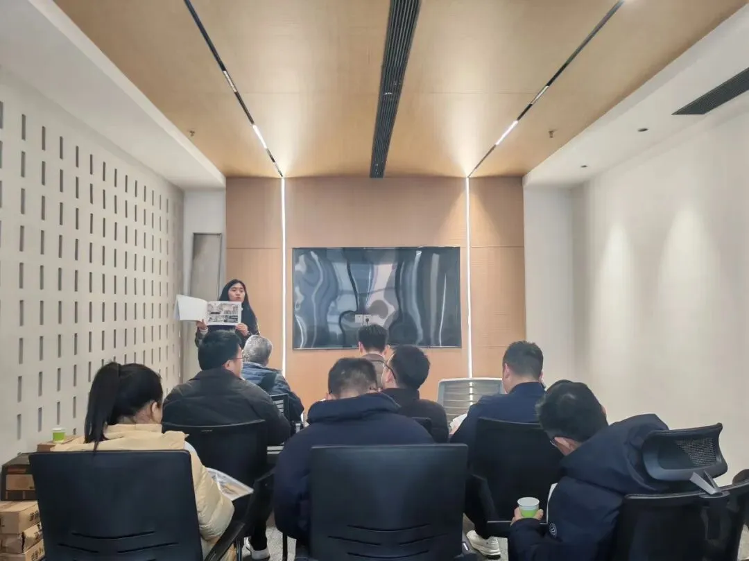 随后,双方前往会议室开展座谈交流。汪三妹总经理详细介绍了文锦家俱的发展历程、核心业务与经营理念。她表示,公司深耕办公家具行业多年,是一家集专业设计、生产、销售、服务为一体的综合性企业,始终以“务实、独特、创新”为运作目标,坚持以优质产品、完善服务和原创设计打造独立品牌。公司产品涵盖系统工作站、行政桌组、会议桌等八大系列及软装设计,可根据客户需求定制非标准异型办公家具,满足政府、企业、学校、酒店等多领域需求。