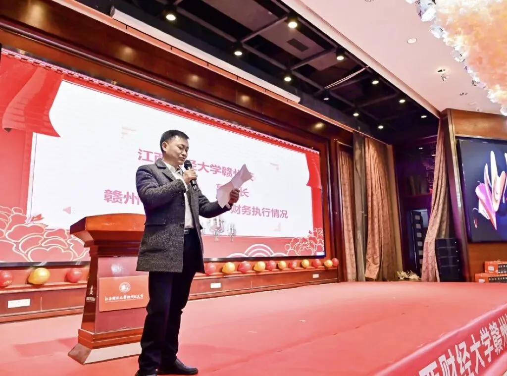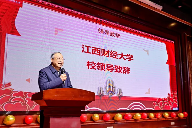 冬日赣南暖意浓,校友情深聚虔城。2026年1月24日,江西财经大学赣州代表处2025年会暨2026迎新大会在赣州鼎峰乾龙花园酒店隆重举行。学校党委常委、副校长阙善栋、李春根出席活动,设计与艺术学院党委副书记肖勇、资深校友代表、兄弟校友会嘉宾及赣州地区百余位江财校友齐聚一堂,共忆同窗岁月,共话发展蓝图。