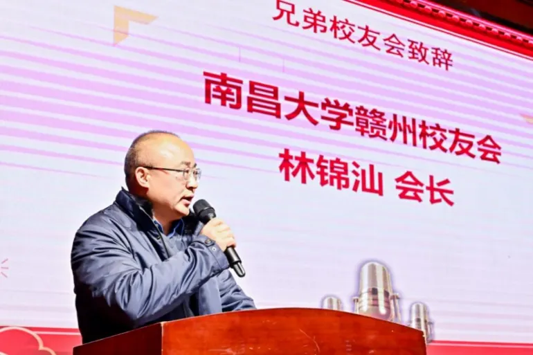 南昌大学赣州校友会会长林锦汕作为兄弟校友会代表致辞,祝贺大会顺利召开,期待未来两校校友会加强交流合作、携手共进;