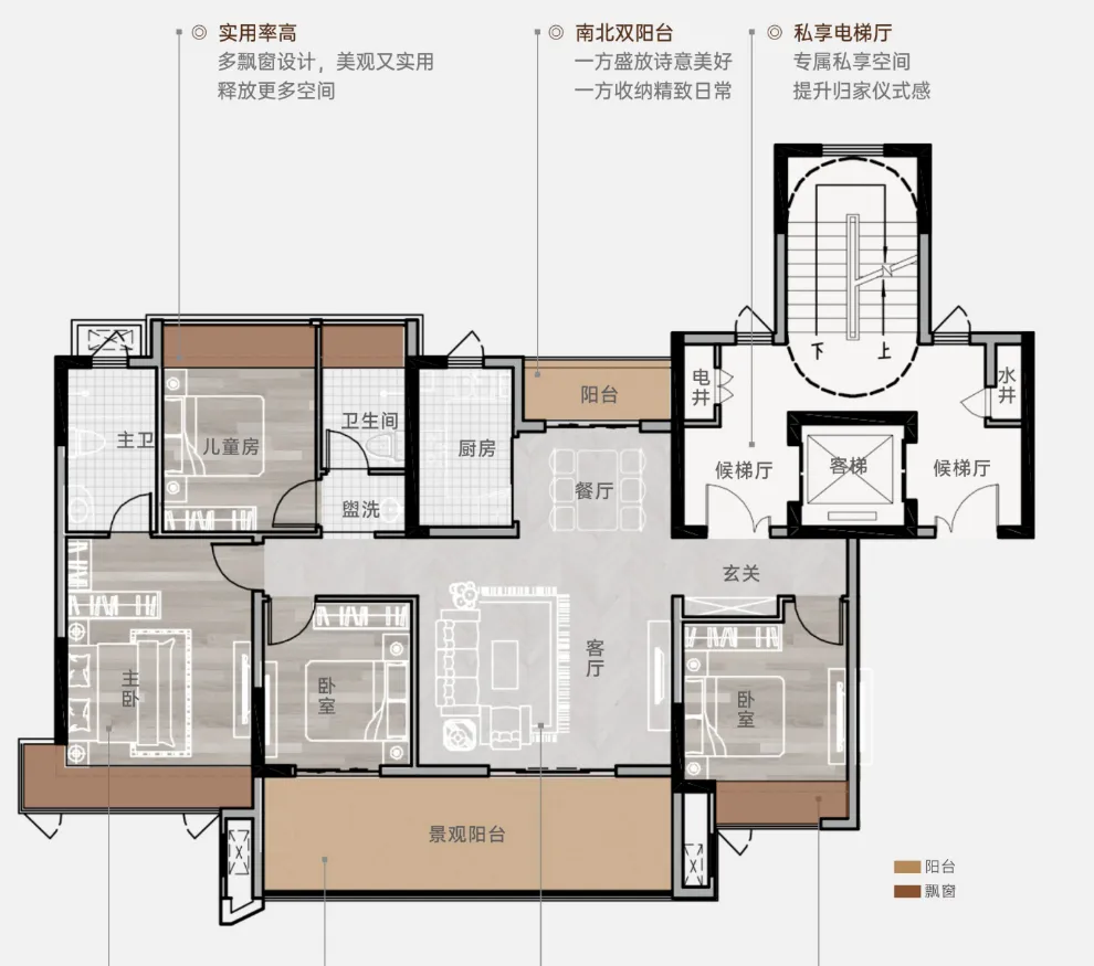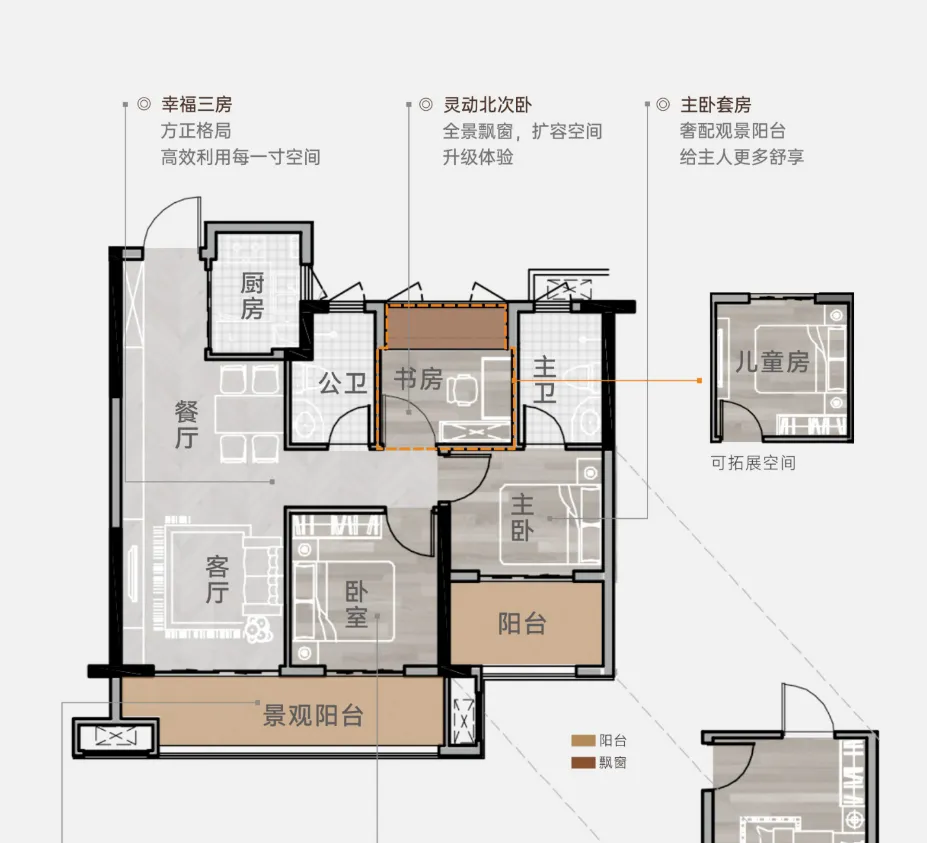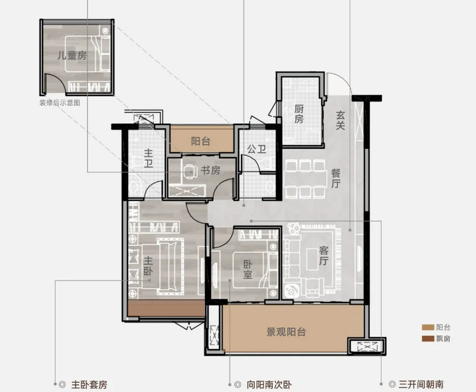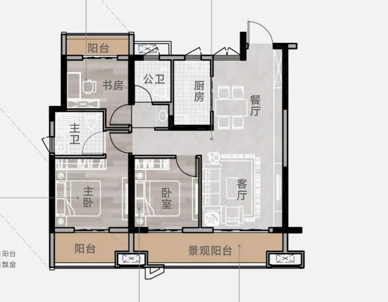 新规户型的好处就是实际使用率高,89平这个面积段也可以做三房两卫。