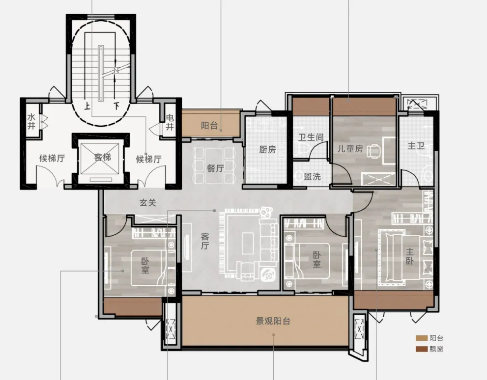 高层有两个户型,89㎡的中间户和107㎡的端户