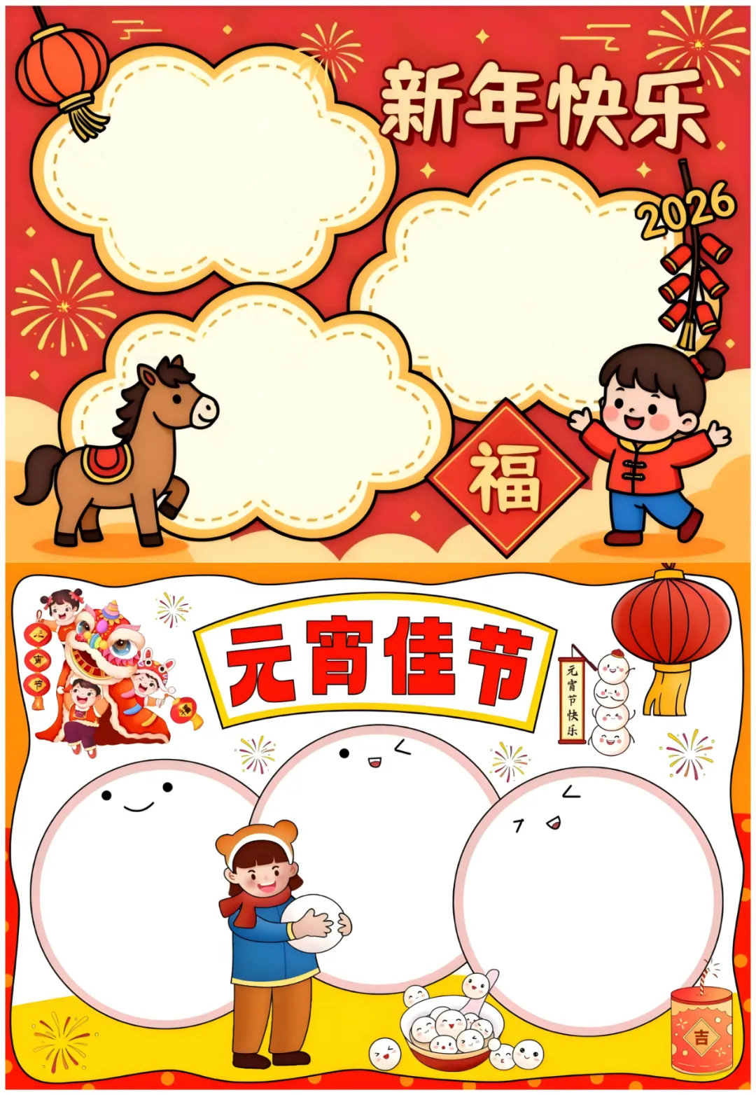 (1)1-3年级创作一幅有关“马年”文化为主题的春节或元宵节小报,纸张4开大小;