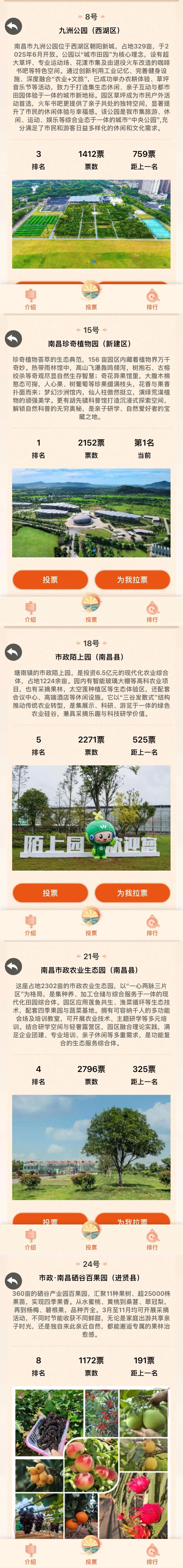南昌市政公用集团九洲公园(8号)、南昌珍奇植物园(15号)、市政陌上园(18号)、南昌市政农业生态园(21号)、市政·南昌硒谷百果园(24号)均参与评选啦。