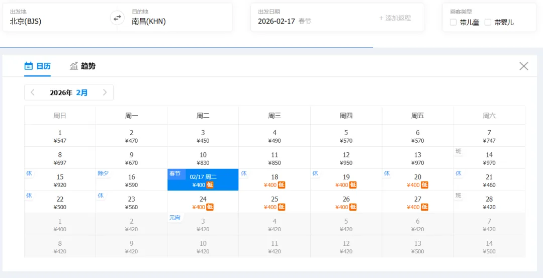 ✈返程最低价:400