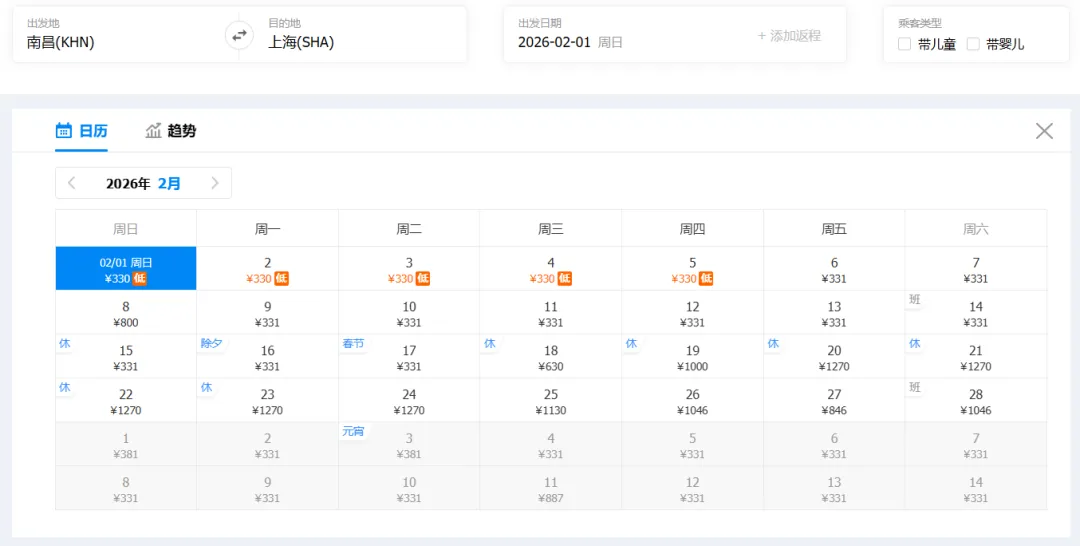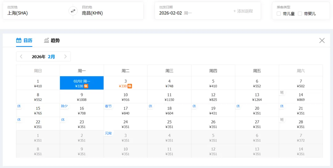 南昌2月最新特价机票来了
