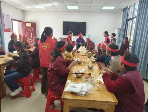 11月11日、29日上午,崇仁县志愿者协会联合抚州市民政局,带着满心关怀与精心准备的物资,赴郭圩乡陂下村、沙堤乡中分村幸福院开展“心连心关爱老人服务”,为这里的老人们送上温馨满满的集体生日会,志愿者们用实际行动诠释着对老年群体的牵挂与敬意。当日上午九点半,志愿者准时集结出发,带着水果、饺子食材、生日蛋糕及表演道具,奔幸福院。抵达现场后,志愿者们便围在厨房忙碌起来,和面、调馅、擀皮、包饺子,大家手法娴熟、配合默契,欢声笑语中,一个个饱满圆润的饺子很快摆满了案板,热气腾腾的饺子不仅是味蕾的期待,更包裹着志愿者们的暖心祝福,志愿者与社工30余人参与,50余位老人受益。