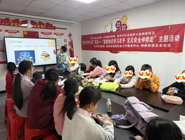 为进一步强化社区儿童的安全防范意识,提升其应对突发状况的自救互救能力,切实筑牢社区安全防护网,由抚州市社会组织公益创投项目支持,项目团队联合抚州医学院青年志愿者团队,于11月16日举办了“急救知识学习在手,宝贝安全伴你走”主题活动。为20名社区儿童提供消防安全与急救包扎知识培训。采用“集中讲解、分组实操”模式,通过案例讲解、互动问答和视频展示普及消防与急救知识。实操环节中,孩子们分组练习灭火器“提、拔、握、压”操作,并通过“折纸青蛙”趣味游戏学习止血、绷带包扎等技能。