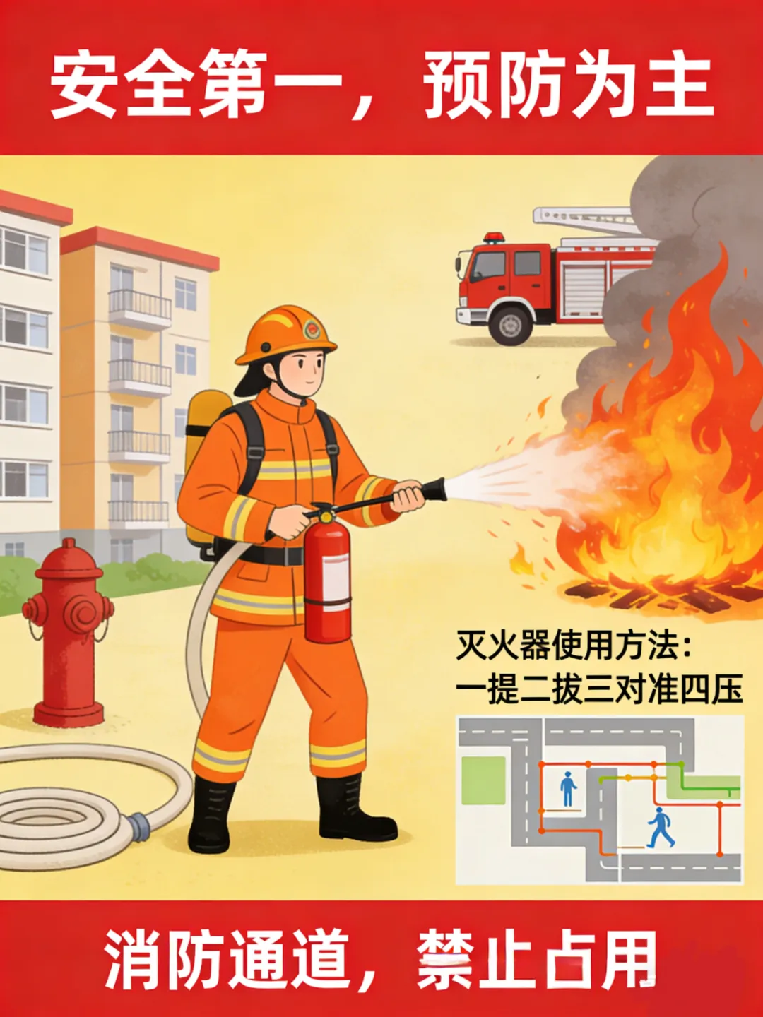 学习使用消防器材,了解逃生路线;