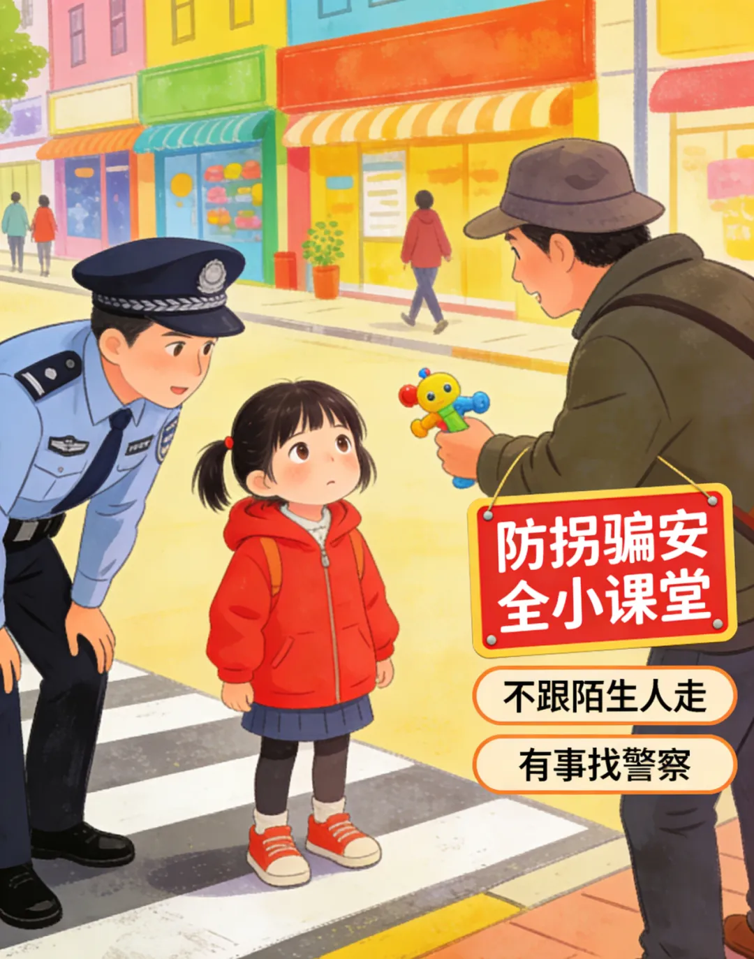 牢记家庭地址、父母电话,遇事找警察;