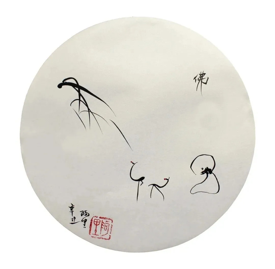 然而,在其艺术创作中,达摩、观音等佛教人物形象频繁出现,其"玄道水墨"的命名也带有浓厚的道家色彩,艺术表现与其宗教背景呈现多元融合的特征。
