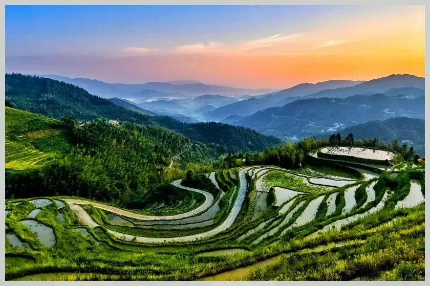 转过最后一个弯时,梯田突然出现在眼前。一层一层,从山脚叠到山顶,像被谁铺展开的绿绸子。 朋友忘了抱怨,拿起手机拍个不停。我却没动,只是看着那些在田里劳作的人,他们弯腰的姿势,和梯田的曲线刚好重合。后来我们走下去,踩在田埂上,泥土的湿软从鞋底传上来。有个老奶奶递给我们一把刚摘的茶,叶子上还带着露水。